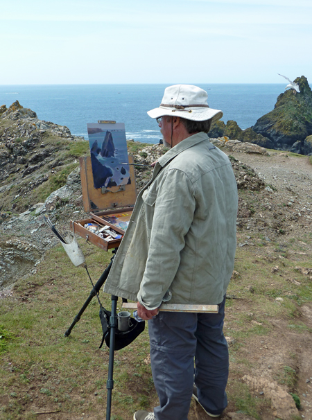 Above – Valerie Pirlot paints a cracking spot near Botallack with a nice hole in the rock on the left!