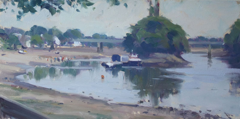 ‘Towards Oliver’s Island from Kew Bridge’, oil on board 10x13in