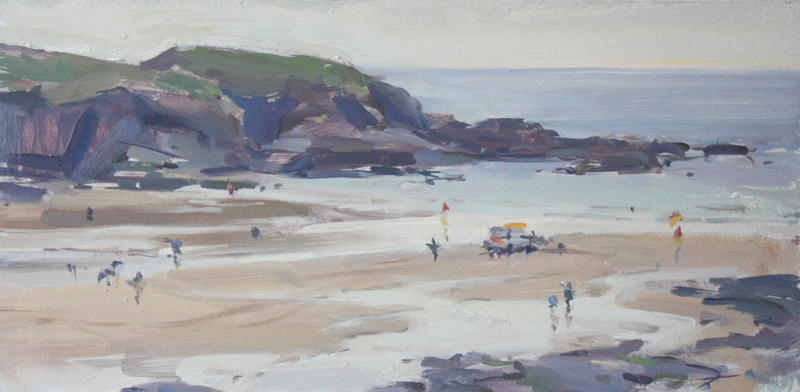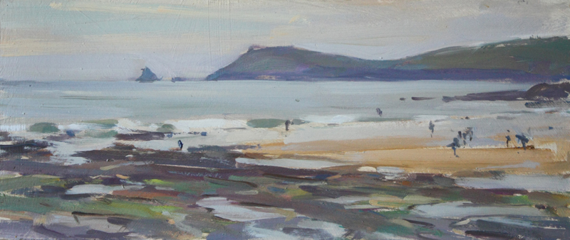 Incoming tide, Constantine Bay (6x14in, oil on board)